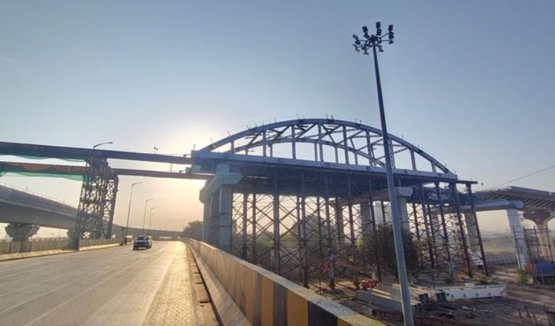 इंदौर के डबलडेकर ब्रिज की 800 टन वजनी बो-स्टिंग को दूसरे सिरे से जोड़ने का काम शुरू