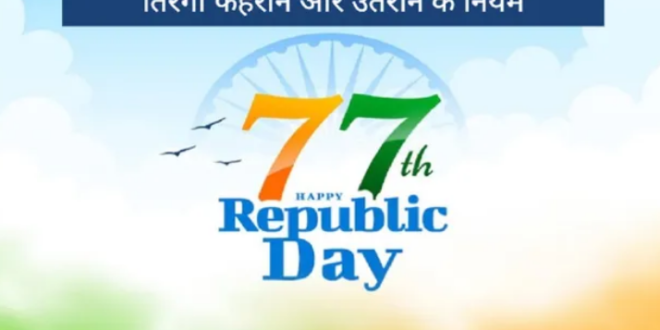 देशभर में 77वां गणतंत्र दिवस मनाया जा रहा है। इसे राष्ट्रीय पर्व के रूप में सेलिब्रेट किया जा रहा है। इस राष्ट्रीय पर्व को लेकर देश के स्कूल, कॉलेजों में तैयारियां हो रही हैं। इस दिन पर स्कूल-कॉलेज के साथ ही विभिन्न सरकारी भवनों, सोसाइटी में विभिन्न प्रकार के सांस्कृतिक कार्यक्रम, परेड, गीत-संगीत, भाषण प्रतियोगिता, कविता मंचन का आयोजन किया जाता है। हर जगह कार्यक्रमों में ध्वजारोहण किया जाता है। ऐसे में सभी के लिए झंडा फहराने और उतारने के नियम जानने बेहद जरूरी हैं ताकी तिरंगे का अपमान न हो।