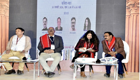 विश्व पुस्तक मेला 2026 के अंतर्गत शनिवार को साहित्य अकादेमी की तरफ से दो कार्यक्रम ‘आमने-सामने’ एवं ‘कविता-पाठ’ हॉल संख्या-2 स्थित ‘लेखक मंच’ पर आयोजित किए गए। ‘आमने-सामने’ कार्यक्रम में साहित्य अकादेमी पुरस्कार से सम्मानित हिंदी की प्रख्यात लेखिका अनामिका और असमिया की चर्चित लेखिका अनुराधा शर्मा पुजारी ने भाग लिया। दोनों लेखिकाओं ने पाठकों के साथ अपनी रचना-प्रक्रिया साझा करते हुए अपनी रचनाओं का पाठ भी किया। अनामिका ने कहा, कि अपने बारे में बात करना विशेष रूप से कस्बाई परिवेश की स्त्री के लिए आसान नहीं होता। उन्होंने स्त्री के स्वभाव से जोड़ते हुए कहा कि कविता इशारों में बोलती है।