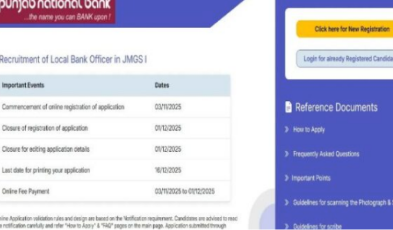 पंजाब नेशनल बैंक में लोकल बैंक ऑफिसर (LBO) के कुल 750 पदों भर्ती हो रही हैं जिसमें शामिल होने के लिए आवेदन की लास्ट डेट आज यानी 1 दिसंबर 2025 निर्धारित है। ऐसे में जो अभ्यर्थी इस भर्ती के लिए पात्रता पूरी करते हैं और बैंक में सरकारी नौकरी पाना चाहते हैं वे बिना देरी करते हुए ऑनलाइन माध्यम से तुरंत ही आवेदन प्रक्रिया पूर्ण कर लें।