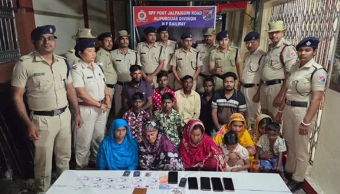 पश्चिम बंगाल के जलपाईगुड़ी रोड स्टेशन पर रेलवे सुरक्षा बल (RPF) ने दिल्ली जाने वाली नॉर्थ-ईस्ट एक्सप्रेस ट्रेन से 14 बांग्लादेशी नागरिकों को पकड़ा। इसमें चार महिलाएं और चार नाबालिग शामिल हैं। रेलवे सुरक्षा बल को इन लोगों के पास से आधार कार्ड भी मिले हैं। जिसकी जांच की जा रही है। RPF इंस्पेक्टर बिप्लब दत्ता ने बताया कि यह जांच खास सूचनाओं के आधार पर की गई थी।