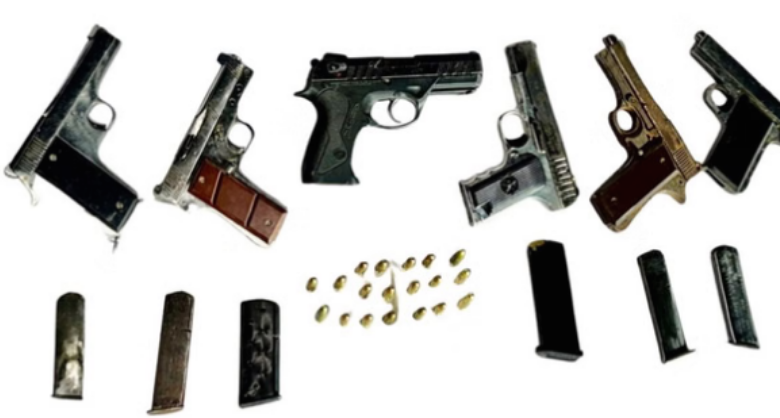 पुलिस ने आरोपियों के कब्जे से कुल 6 पिस्तौलें (एक पीएक्स5, चार .32 बोर और एक .30 बोर पिस्तौल) और 19 जिंदा कारतूस बरामद किए हैं।