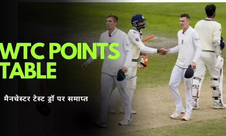 मैनचेस्टर टेस्ट ड्रॉ होने के बाद वर्ल्ड टेस्ट चैंपियनशिप 2025-27 अंक तालिका में कोई बदलाव नहीं हुआ। दोनों टीमों को 4-4 अंक मिले। डब्ल्यूटीसी अंक तालिका में आइए जानते हैं भारत-इंग्लैंड की टीमें किस-किस स्थान पर मौजूद है?
