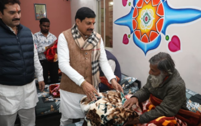 मुख्यमंत्री डॉ. मोहन यादव ने सोमवार रात इंदौर के दयालबाग स्थित आश्रय स्थल का देर रात औचक निरीक्षण किया। उन्होंने वहां अस्थायी रूप रह रहे लोगों से बातचीत की और आश्रय स्थल पर उपलब्ध सुविधाओं एवं व्यवस्थाओं की विस्तृत जानकारी ली। निरीक्षण के दौरान मुख्यमंत्री ने सभी आश्रयग्राहियों को कंबल वितरित किए, जिससे ठंड के मौसम में उन्हें राहत मिल सके।