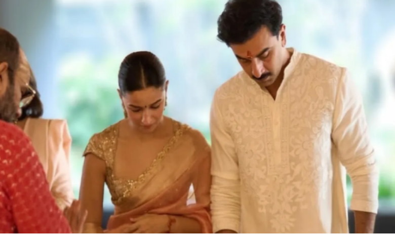एक तस्वीर में रणबीर अपने पिता के सामने नतमस्तक होते हुए दिख रहे हैं। एक तस्वीर में नन्ही राहा गृह प्रवेश पूजा में बैठकर अक्षत हाथ में लिए दिख रही हैं। एक तस्वीर में राहा अपने पापा की गोद में हैं।